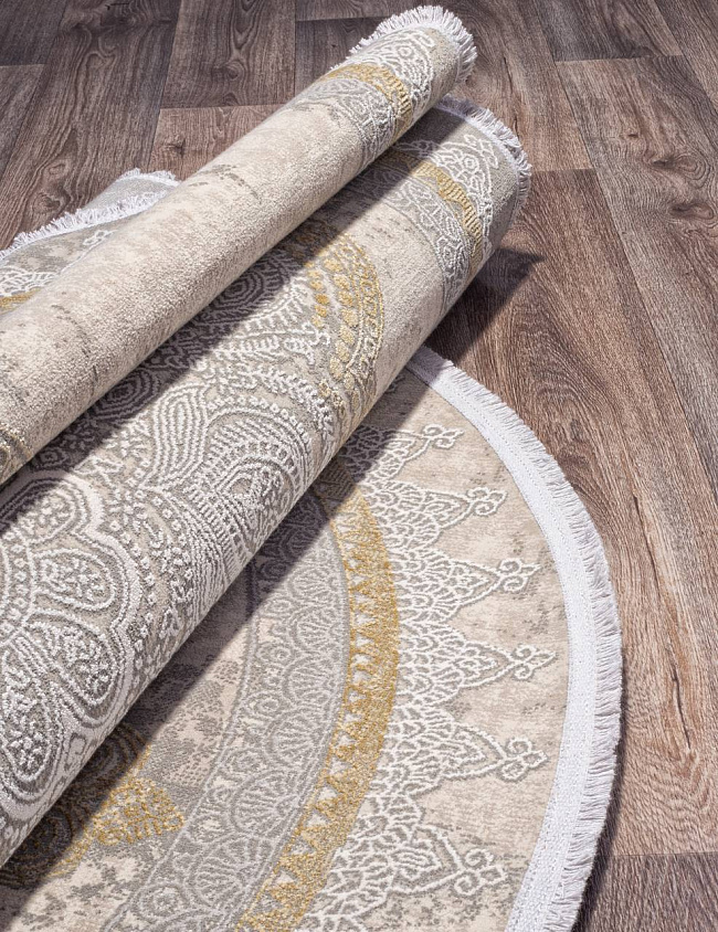 Коротко: «Ковер ATLAS 9306 BEIGE / BEIGE Овал» (ATLAS DORUK, DORUK, Турция) — ковер для дома, гостиной. материал: вискоза 65% + Акрил 30% + Полиэстер 5%, стиль: в классическом стиле, цвет: бежевый, серый, ворс: 8 мм, плотность: 1152000 точек/м², основа: хлопок, ориентирован на классическую подачу, страна производства: Турция.