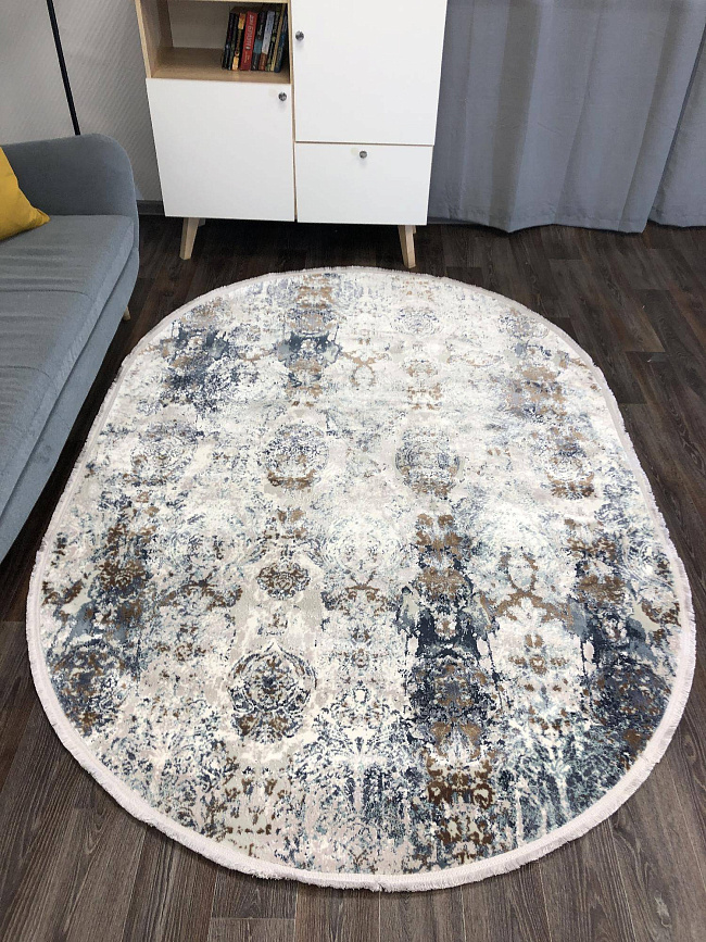 Украсьте интерьер современным ковром DOKU 9354H BLUE / CREAM Овал!