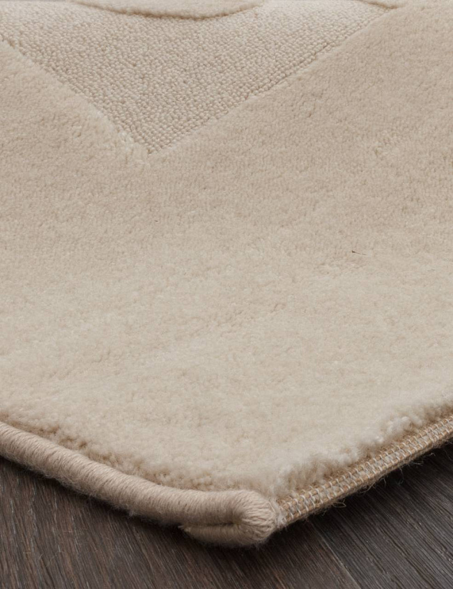 Этот ковер хорошо работает в современном интерьере, где важны чистая визуальная логика, фактура и умеренный декоративный акцент без перегруженности деталями.