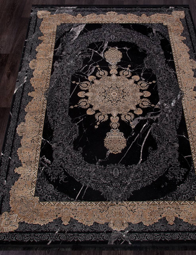 Коротко: «Ковер MUSKAT 1200 90117 000» (MUSKAT 1200, IRANOS, Иран) — ковер для дома, гостиной. материал: бамбуковый шелк, стиль: в классическом стиле, цвет: черный, бежевый, золотой, тип ворса: Короткий, плотность: 3600000 точек/м², основа: хлопок, ориентирован на классическую подачу, страна производства: Иран.