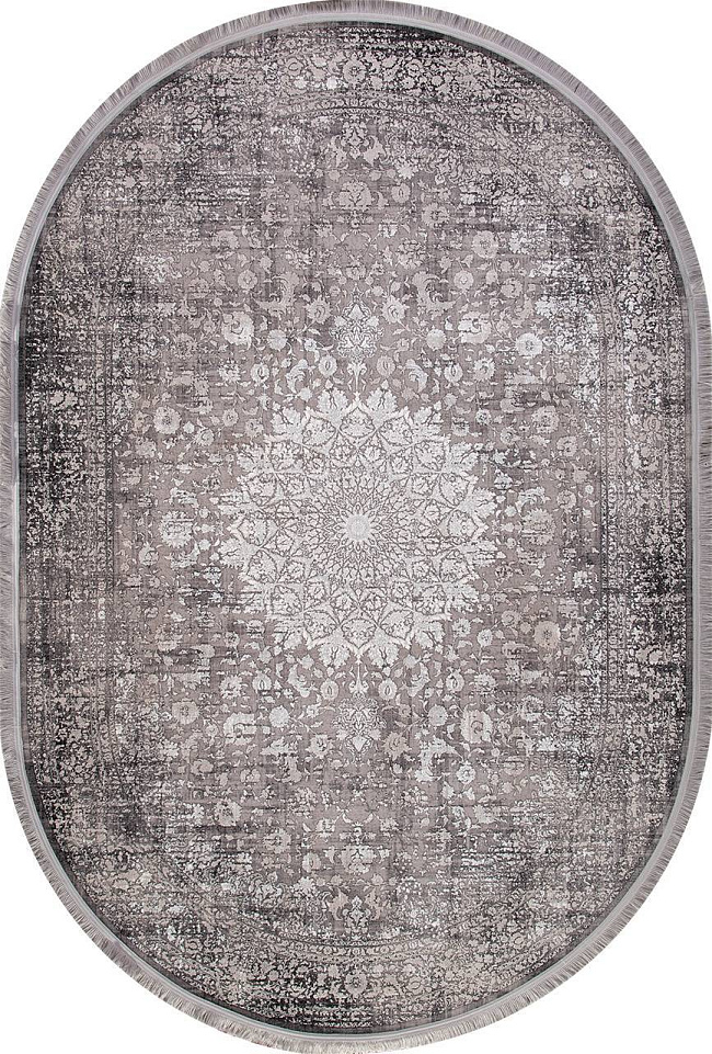 Коротко: «Ковер MUSKAT 1200 9018 000 Овал» (MUSKAT 1200, IRANOS, Иран) — ковер для дома, гостиной. материал: бамбуковый шелк, стиль: в классическом стиле, цвет: серый, бежевый, тип ворса: Средний – 6-12 мм, плотность: 3600000 точек/м², основа: хлопок, ориентирован на классическую подачу, страна производства: Иран.