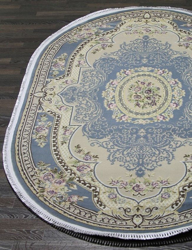 Коротко: «Ковер NAPOLI 9006C BLUE / BLUE Овал» (NAPOLI, FASHN, Турция) — ковер для дома, гостиной. материал: полипропилен + Акрил, стиль: в классическом стиле, цвет: кремовый, синий, ворс: 9 мм, плотность: 756000 точек/м², основа: джутовая, ориентирован на классическую подачу, страна производства: Турция.