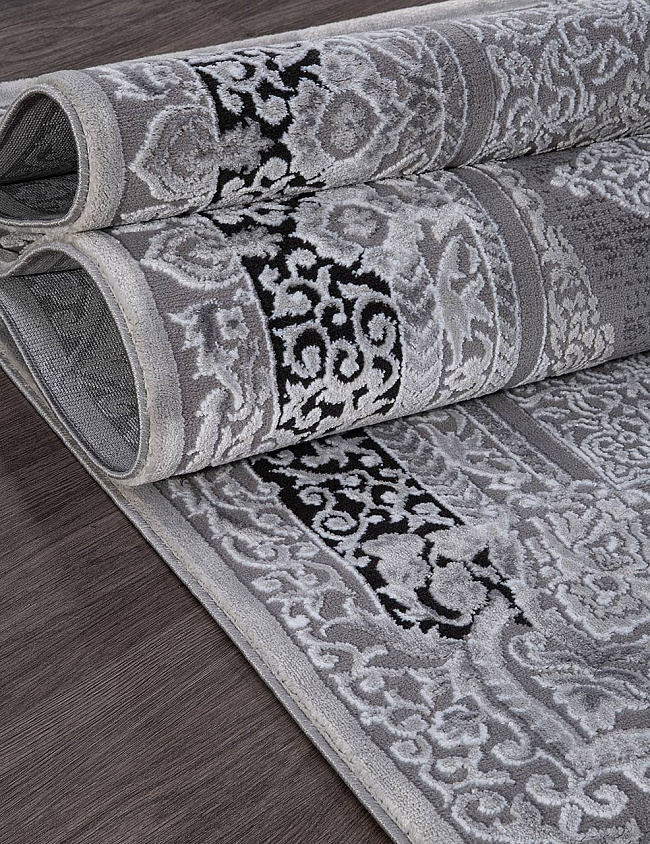 Коротко: «Ковер PANAMA PN001G GREY / GREY» (PANAMA, KARMEN HALI, Турция) — ковер для дома, гостиной. материал: полиэстер, стиль: в классическом стиле, цвет: серый, черный, ворс: 9 мм, плотность: 530000 точек/м², основа: джут, ориентирован на классическую подачу, страна производства: Турция.