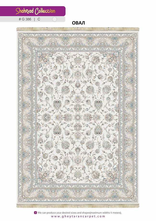 Ищете красивый ковер в любую комнату? Рекомендуем обратить внимание на SHAHRZAD 1500 ACRYLIC G386 C 000 Овал из коллекции SHAHRZAD 1500 ACRYLIC! Его гармоничный дизайн станет украшением интерьера и привнесет в него оригинальные нотки.