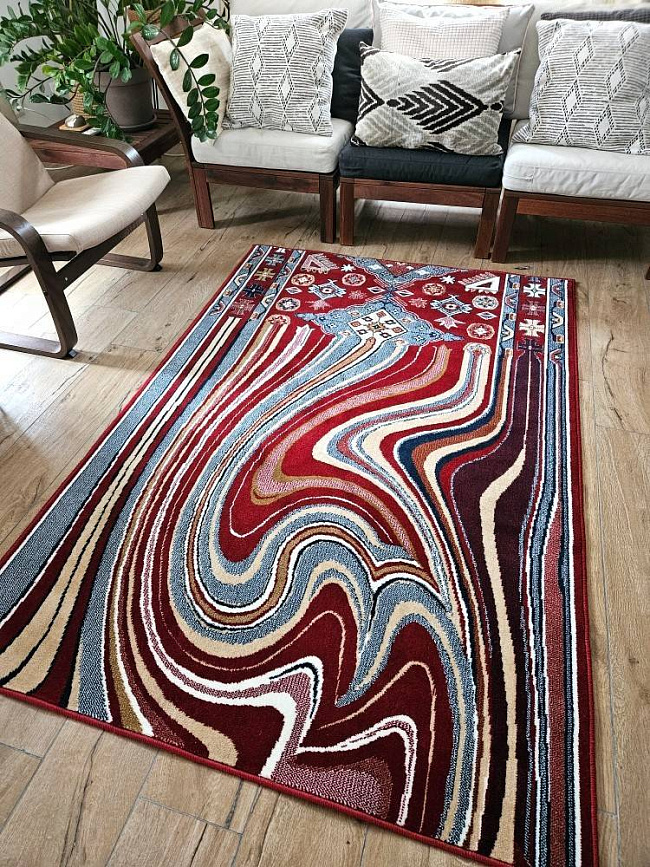 Коротко: «Ковер СТЕКАЮЩИЙ 40504-04» (Creative Carpets - machine made, Creative Сarpets) — ковер для дома, гостиной. материал: полипропилен, стиль: современный, Модерн, цвет: красный, синий, серый, бежевый, ворс: 8 мм, плотность: 320000 точек/м², основа: джутовая, подходит для современного интерьера, страна производства: Белоруссия.